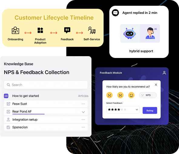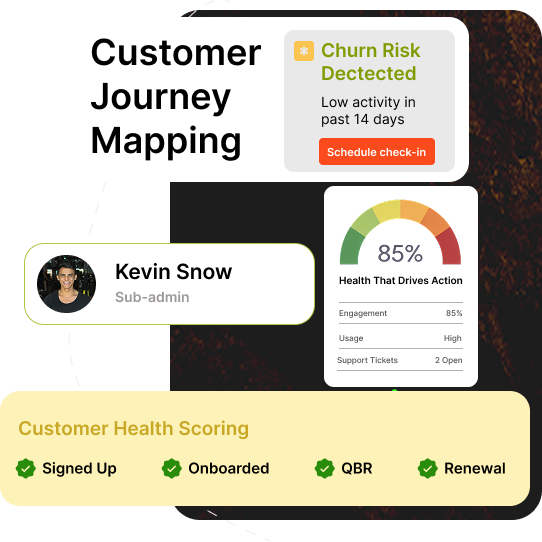 From onboarding to renewal, automate your entire customer lifecycle. Everything flows without missing a beat or burning out your best people.