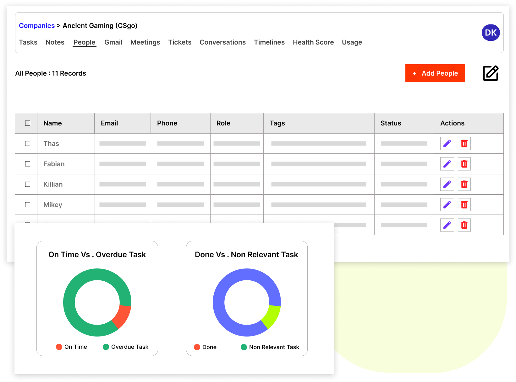 Answer: CSNook tracks a variety of customer data, including engagement metrics, product usage, account details, communication history, and satisfaction scores. All this data is centralized in one view, helping your team deliver personalized interactions and make data-driven decisions.