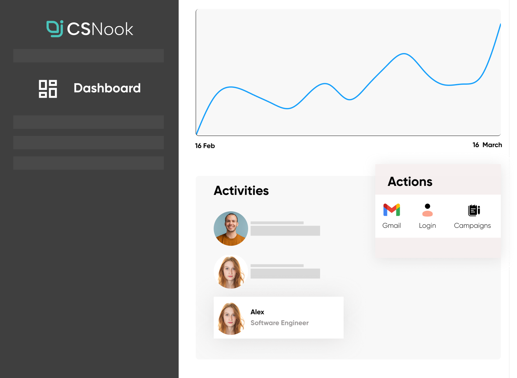 From health tracking to predictive insights, CSNook is the customer success platform you need to stay sharp, stay focused, and stay ahead.