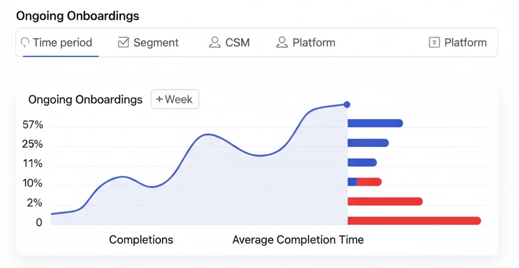 Monitor onboarding timelines, delays, and client-side dependencies with detailed progress tracking.