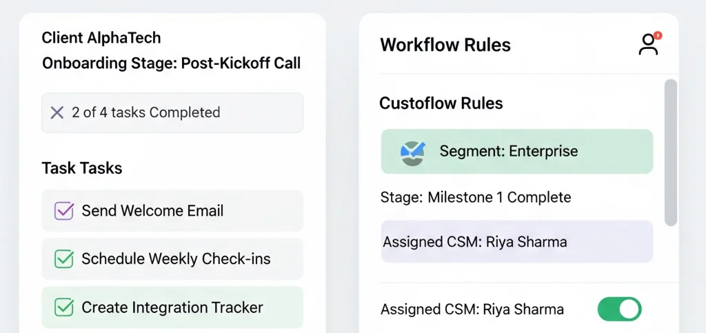 Trigger specific task checklists based on onboarding stage or client type to stay consistent and efficient.