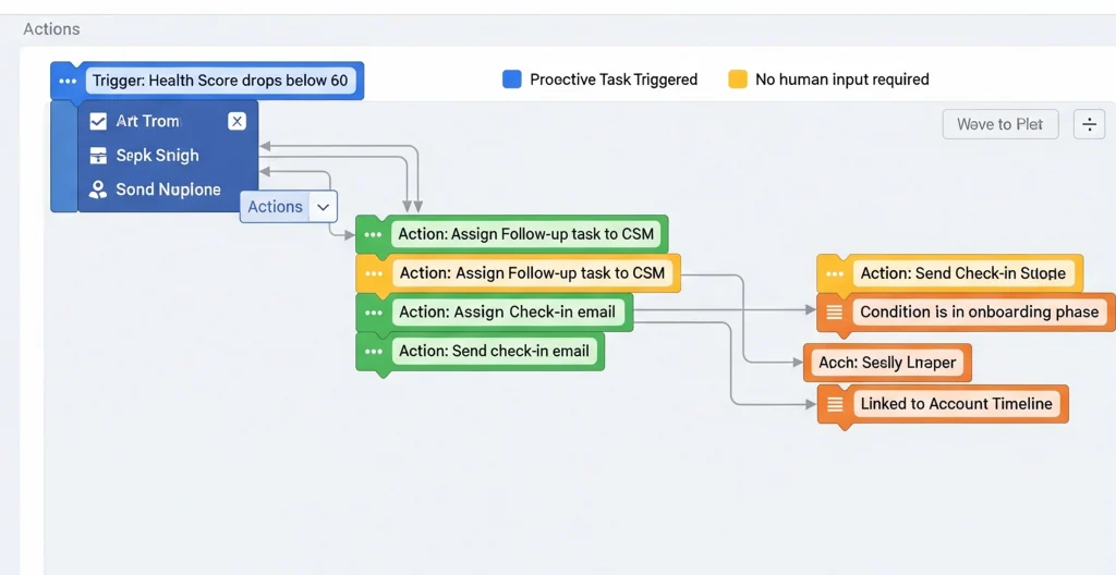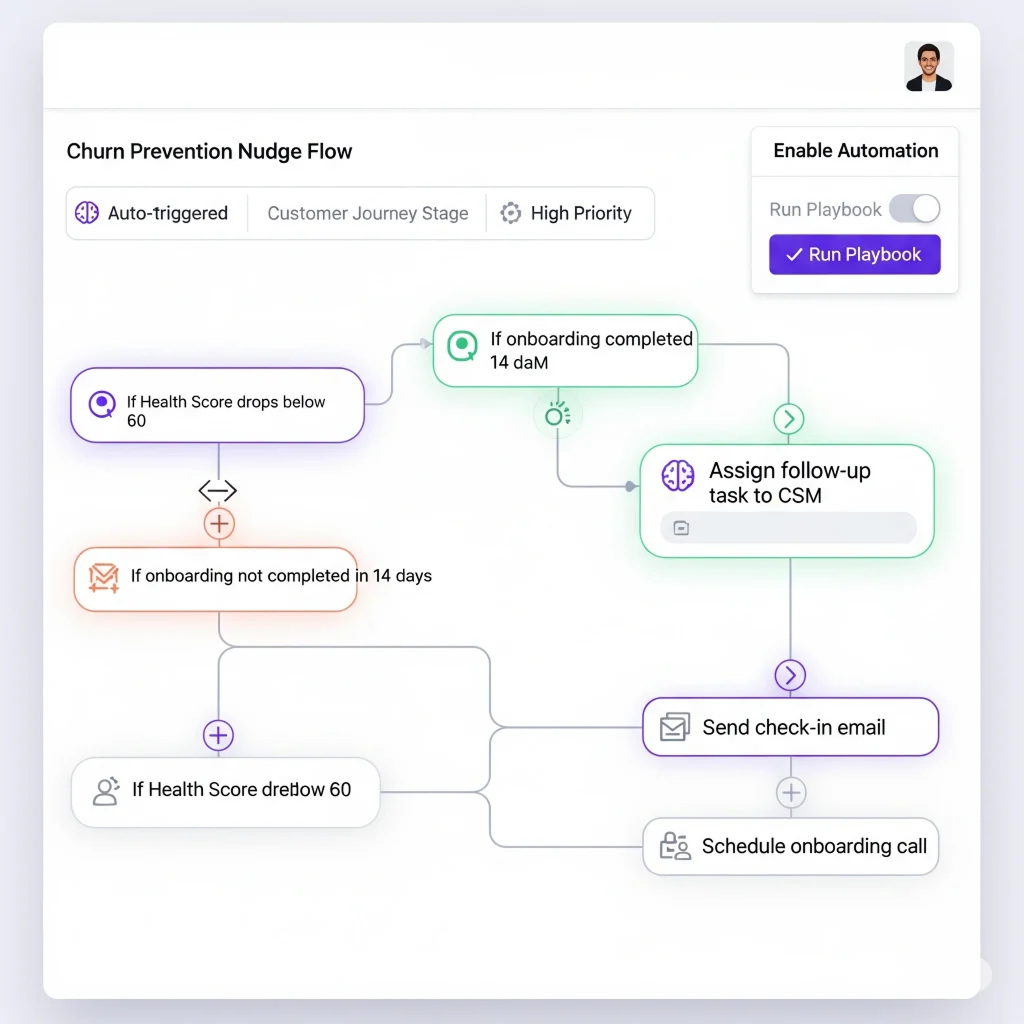 Launch tasks and nudges based on customer health, activity, or key lifecycle moments without lifting a finger.