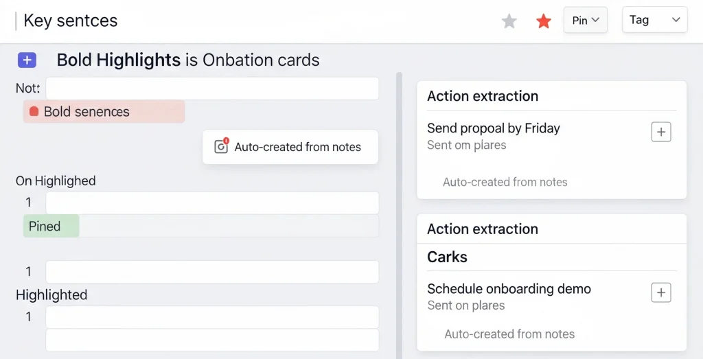 Pin key moments, tag themes, and turn meeting notes into actions your team can actually use.