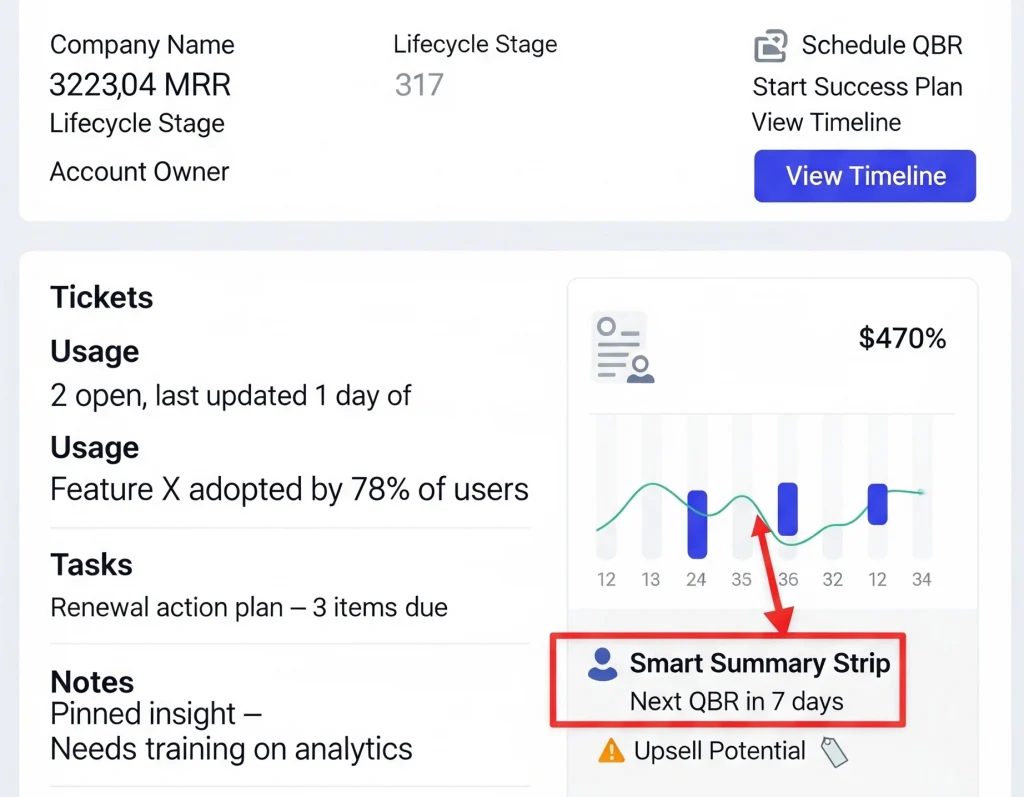 Automate task reminders and upcoming check-ins linked to QBRs so nothing slips through the cracks.