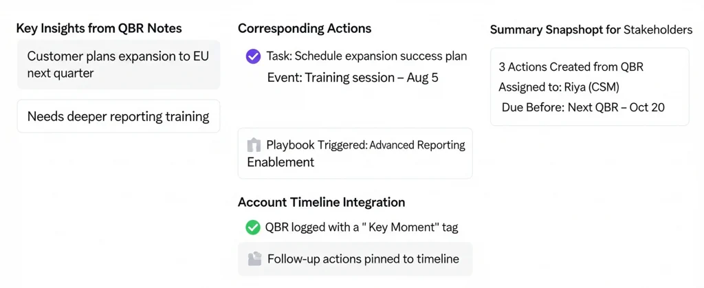 Use notes, emails, meeting records, and segment data to ensure each QBR has substance, not surface-level summaries or assumptions.