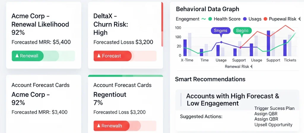 CSNook links account activity with revenue metrics to show which actions drive retention and which don’t, giving you better forecasting and smarter renewal planning.