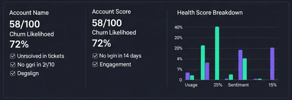 It integrates behavioral, communication, and support data. The scores aren’t static, they evolve dynamically with each customer’s journey.