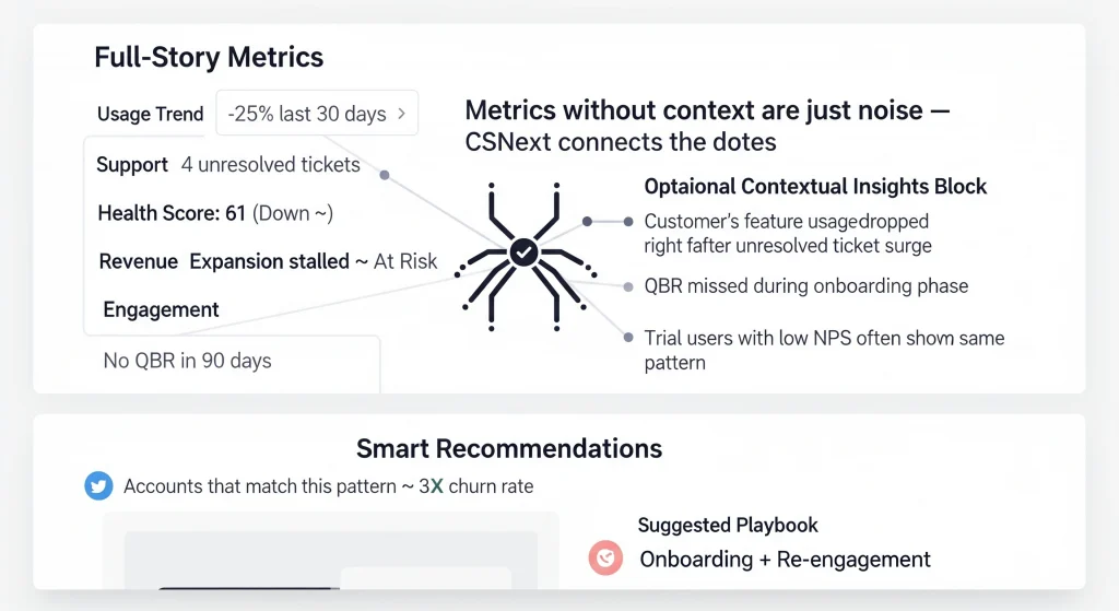 CSNook doesn’t just show you who’s at risk, but also tells you when to act, how to help, and what to prioritize.